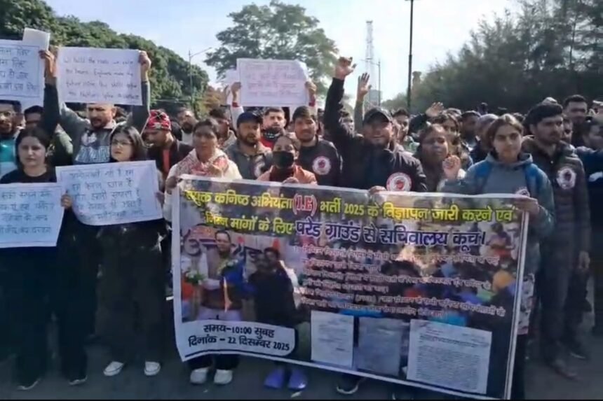 Dehradun: सोमवार को उत्तराखंड बेरोज़गार संघ के नेतृत्व में सैकड़ों युवाओं ने अपनी विभिन्न मांगों को लेकर सचिवालय कूच किया। उत्तराखंड बेरोजगार संघ के अध्यक्ष राम कंडवाल के नेतृत्व में सैंकड़ों युवा 10:30 बजे परेड ग्राउंड में एकत्रित हुए। परेड ग्राउंड से तिब्बती मार्केट, लैंसडाउन चौक होते हुए युवा सचिवालय कूच के लिए निकले। सचिवालय के निकट पहुंचते ही युवाओं को भारी संख्या में तैनात पुलिसबल ने बैरिकेडिंग लगाकर रोक दिया।